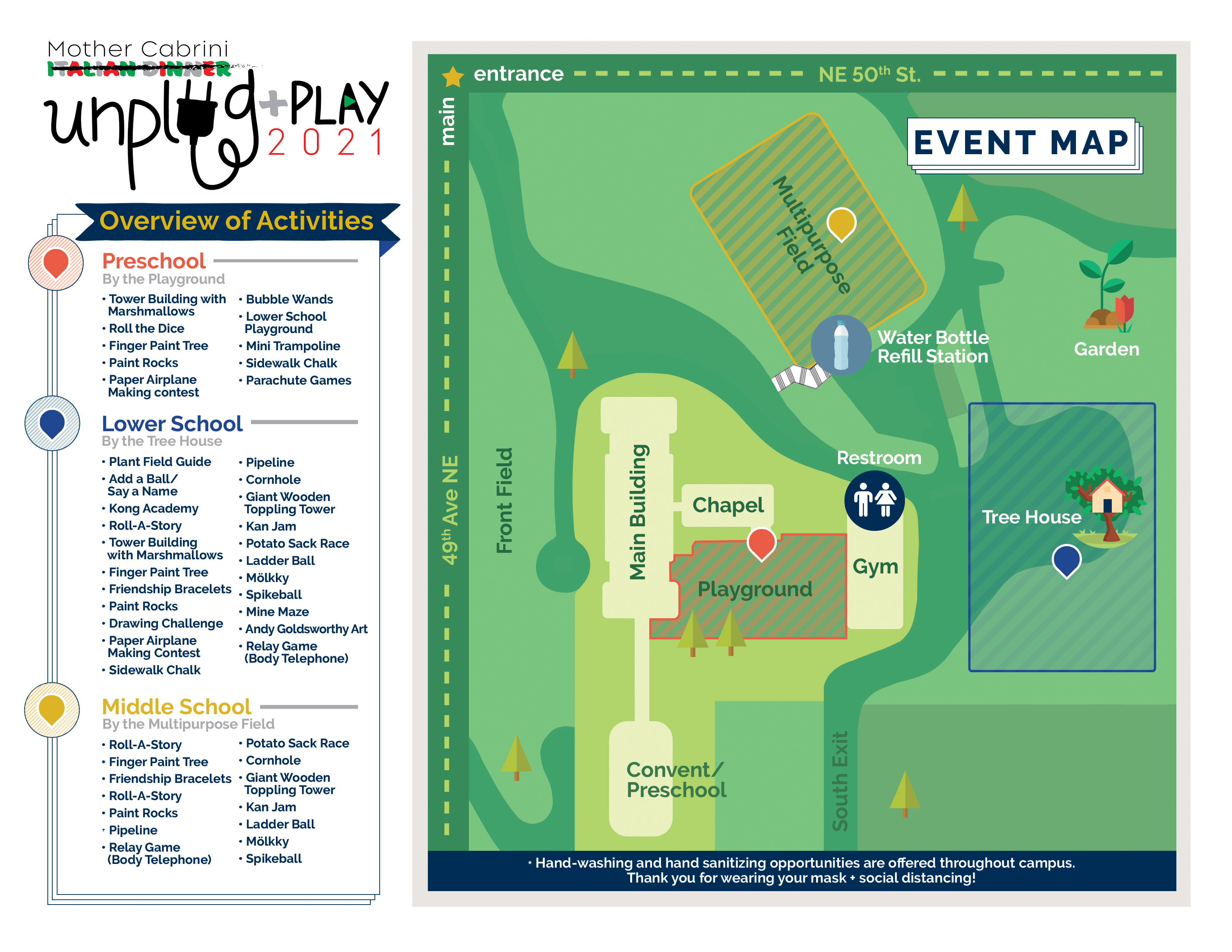 Parking, Safety, & Map for Tonight’s Mother Cabrini Unplug and Play (5:30 - 7:00 PM)